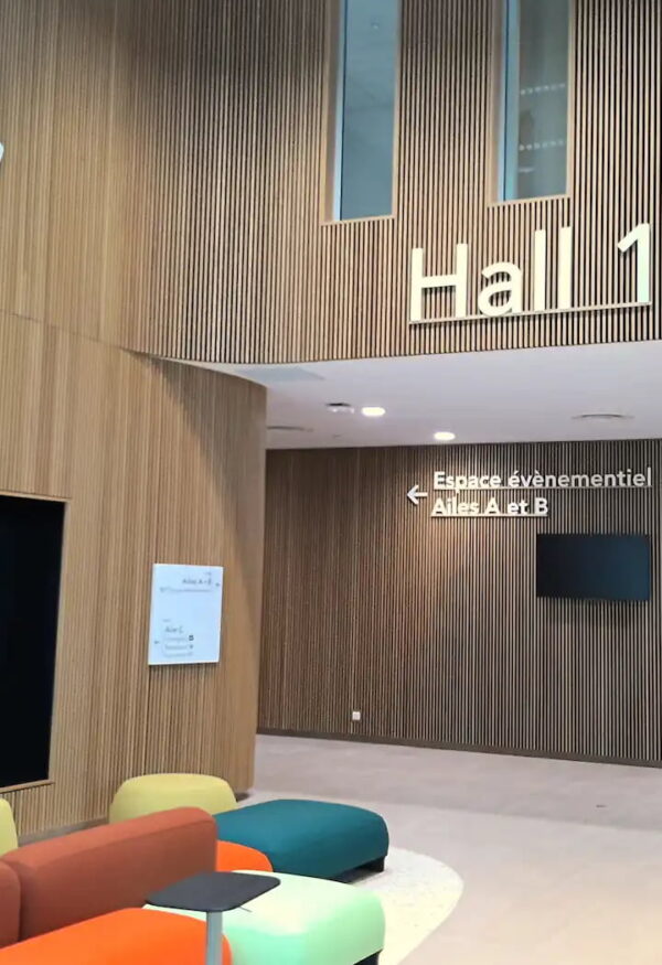 Signalétique du nouveau siège de SNCF Voyageurs.